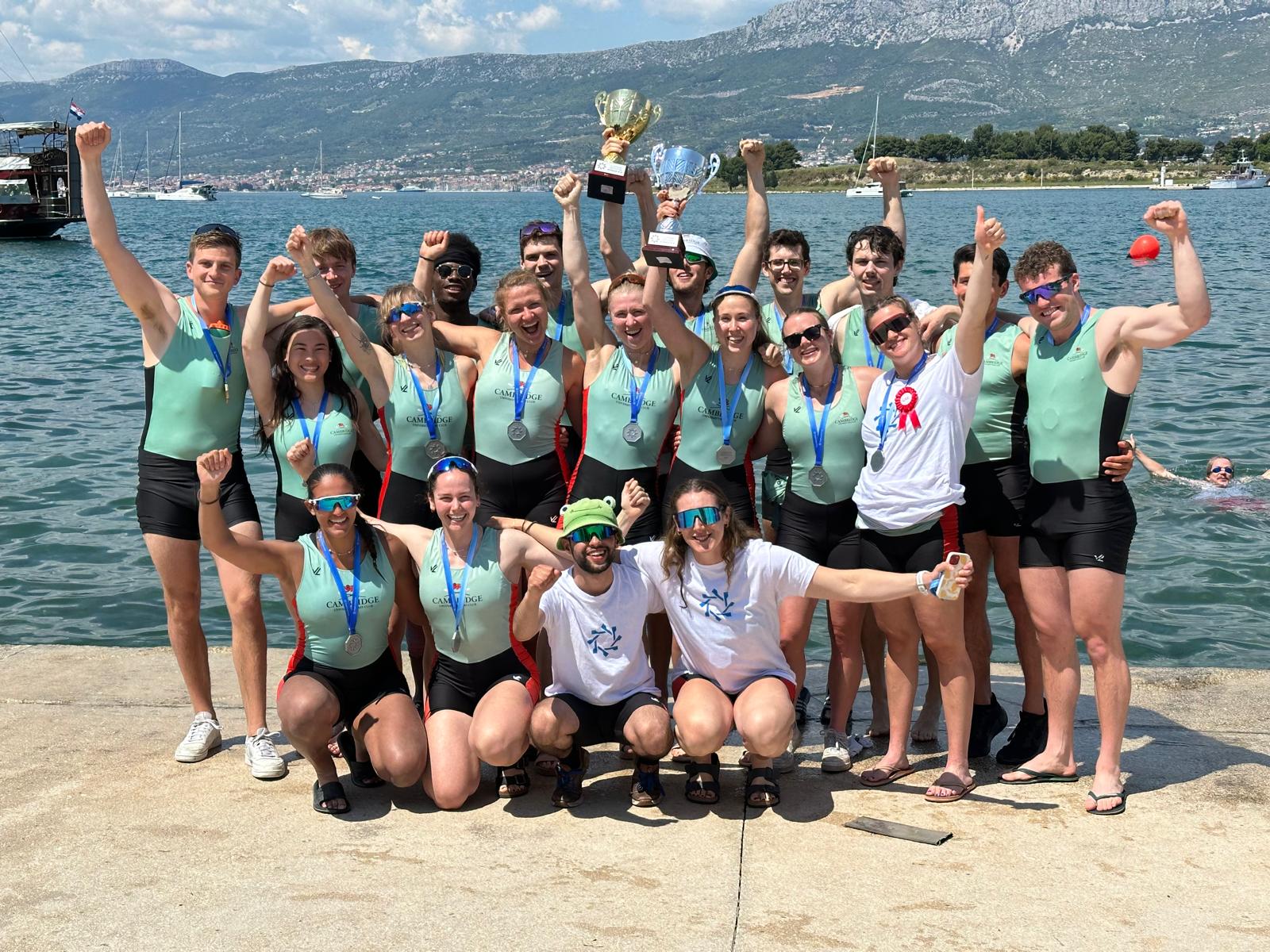 In the stunning Split sunshine, Cambridge celebrated a four medal haul at Regatta Sveti Duje 2025, taking golds in the men’s university eights, women’s legends, and men’s legends and silver in the women’s university eights. CUBC Club Chair and European Rowing President Annamarie Phelps was on-hand to present the medals, having earlier that day signed a Memorandum of Understanding between the European University Sports Association (EUSA) and the European Rowing Confederation (ERC), to co-operate to further university sport, specifically rowing, across Europe.